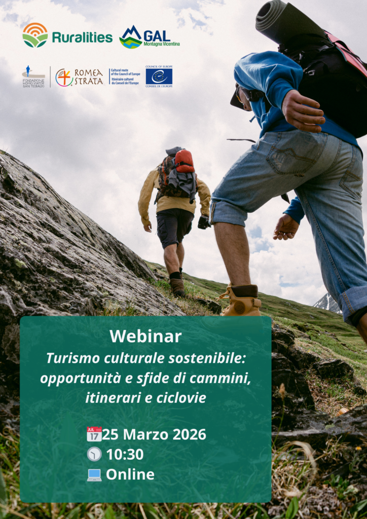 Il webinar, organizzato nell’ambito del progetto Ruralities, sarà tenuto da Maria Laura Gasparini, PhD in Geografia e ricercatrice presso il Centre for Advanced Studies in Tourism (CAST) dell’Università di Bologna, esperta di itinerari culturali transnazionali, governance territoriale e sostenibilità.